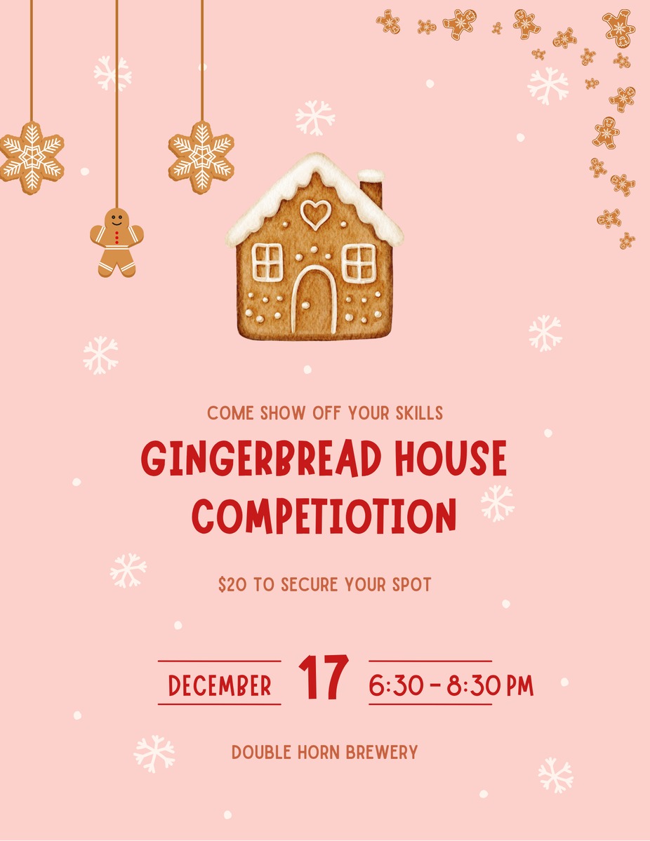 Join us for a festive evening of creativity and fun on December 17th from 6:30 PM to 8:30 PM! For a $20 buy-in, you’ll get everything you need to build your own gingerbread house masterpiece. We’ll supply all the goodies, you bring the holiday spirit! Take home your delicious creation and enjoy some holiday tunes while we all vote for the top gingerbread house of the night. Games, good company, and a little friendly competition included! We can’t wait to see you there.